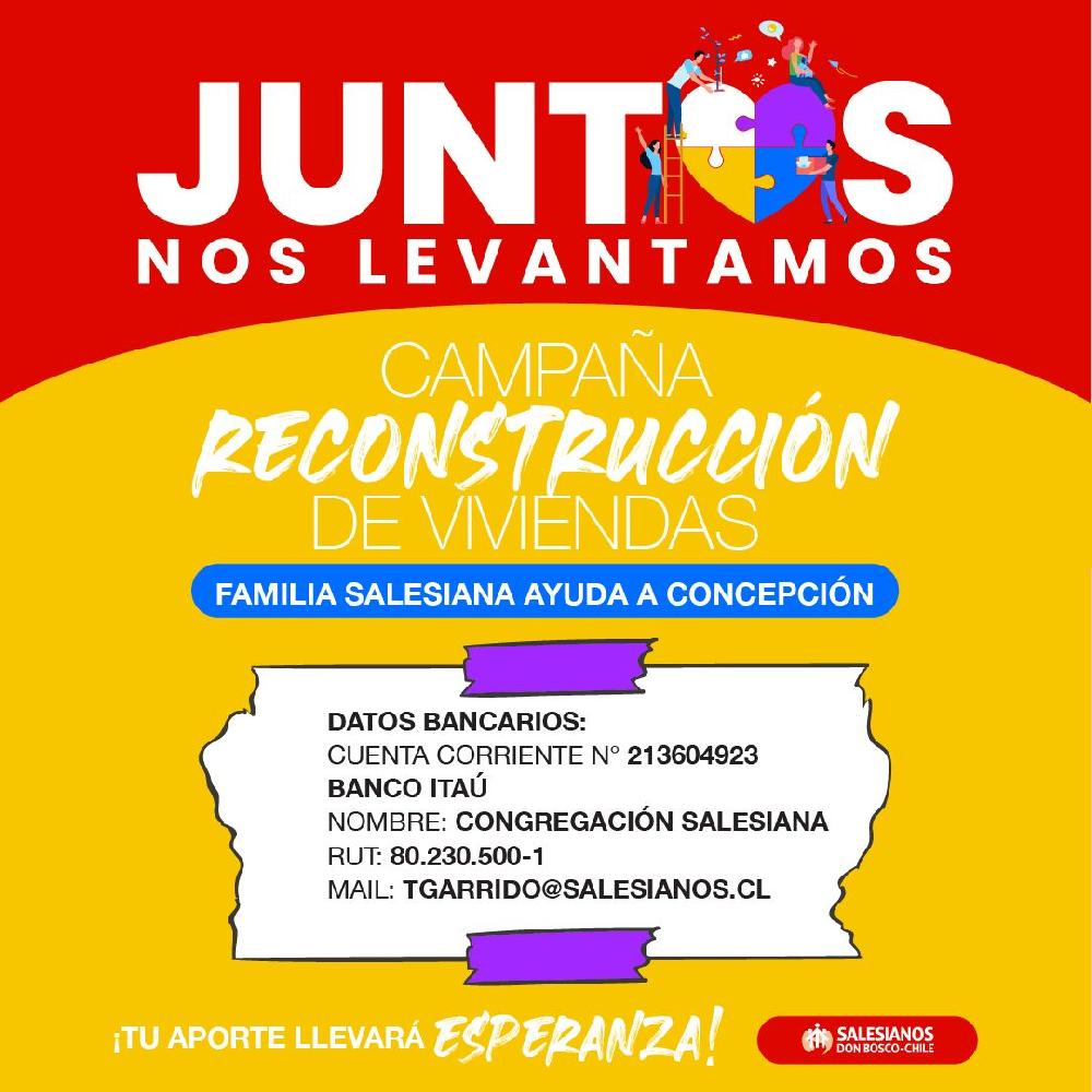 Según una carta enviada por el P. Nelson Moreno, Inspector de los Salesianos en Chile, a las diversas obras salesianas del país, un número considerable de familias ha sufrido la pérdida total de su patrimonio material y habitacional, quedando en una situación de extrema vulnerabilidad.