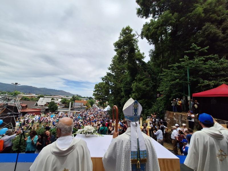 La masiva celebración fue posible gracias al generoso apoyo de numerosas personas y diversas instituciones, entre ellas el Municipio de Temuco, Carabineros de Chile, Bomberos, equipos de emergencia, hombres católicos, sonido Bravo Producciones y voluntarios que colaboraron para que todo se desarrollara en un ambiente de orden, seguridad y fraternidad, palabras de gratitud que extendió el Pbro. Juan Andrés Basly, vicario general. También, agradeció la alegría y entusiasmo de todos los integrantes del coro.